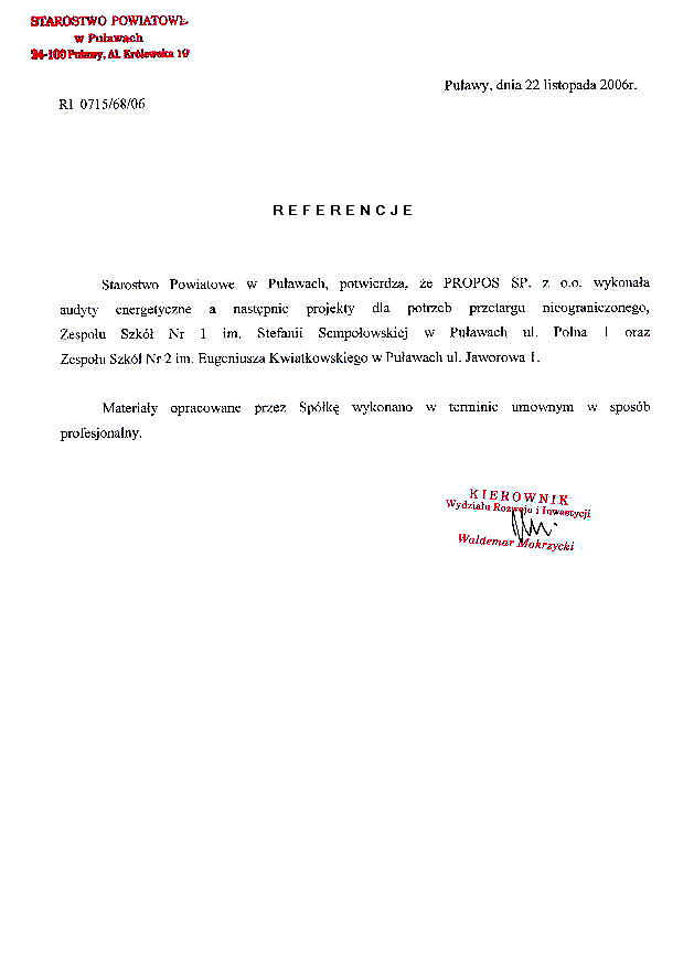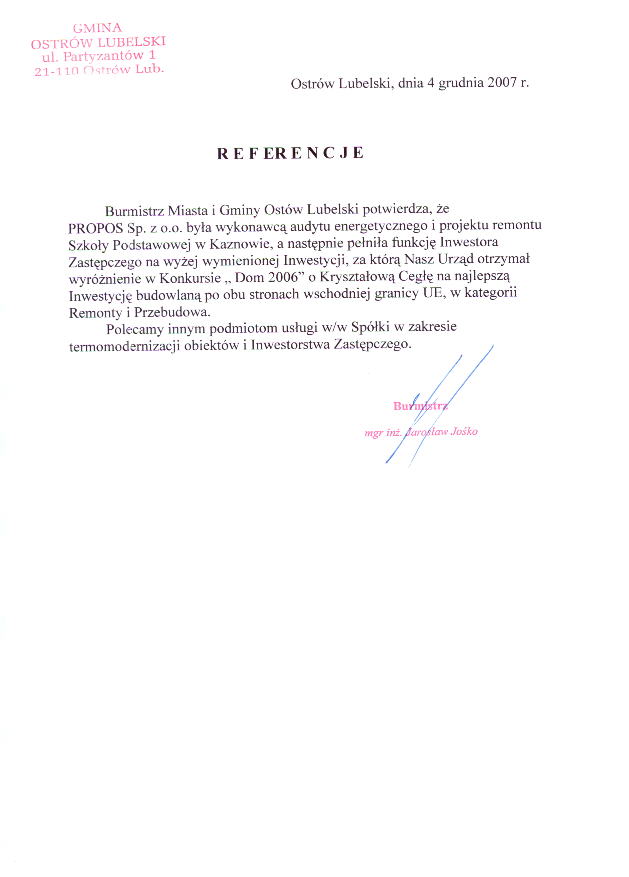 Wybrane referencje: